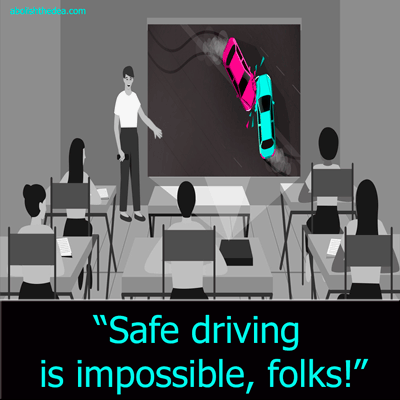 "You know what, kids? All these bloody dead Ohioans that you have just seen sprawled out on the asphalt had one thing in common: they all thought that THEY could drive safely. Well, guess what, cupcake: NO ONE CAN DRIVE SAFELY!!!