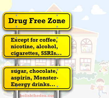 2) That they should understand that the real enemy is unwanted dependency, not drugs in the abstract. Instead of creating boogiemen out of every new drug that comes along -- like ice, PCP 3, crack, Fentanyl, and oxy4 -- we need to drive the point home that daily use of such substances can cause dependency. This is not rocket science. It is a simple message that can actually be taught. People use potentially addictive drugs wisely all the time, but we are not allowed to hear about it5. And how do they use them wisely? It's very simple. They merely refrain from using any particular dependence-causing drug on a regular basis. They vary the routine such that they do not become dependent on any one substance6 -- which, of course, is another reason to end prohibition, for it makes it difficult to vary drug use because it limits drug choice to the few substances that a self-interested dealer is willing and able to provide.