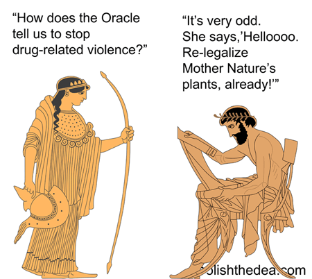 Think back to the many crime shows you've watched over the years. How much would cops have had to do if plant medicine was actually legal? Answer: very little indeed. They could sit back like Andy Griffith and chat to the locals. The war on plant medicine has made the world enormously violent, and until Americans realize this fact, that "it's the Drug War, stupid," they'll keep generating the very violence that they scream bloody murder about in town hall meetings and on talk shows. Hello, Chicken Little Drug Warrior: it's you yourself who is causing the sky to fall when it comes to inner-city violence. Let's start arresting the real culprits: let's arrest the anti-American fascists who criminalized plant medicine in the first place, thus violating the natural law upon which Thomas Jefferson founded America.