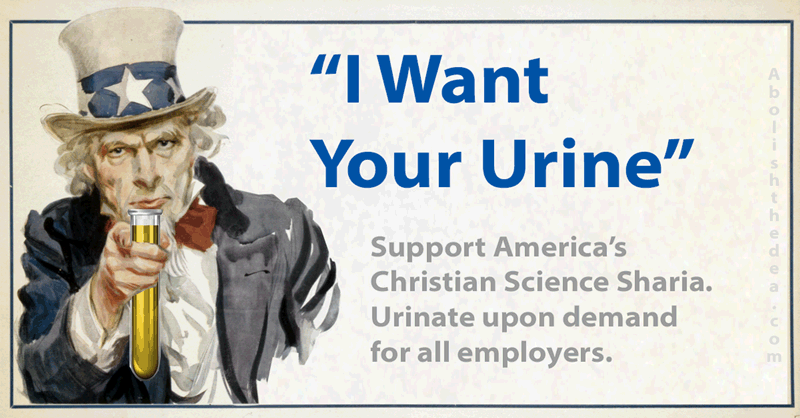 WAKE UP! Drug testing and the drug war in general is all about destroying American democracy -- and democracy around the world, while we're at it. It is Christian Science Uber Alles -- even if the vast majority of drug warriors have never even heard of the drug-hating religion of Mary Baker Eddy.
