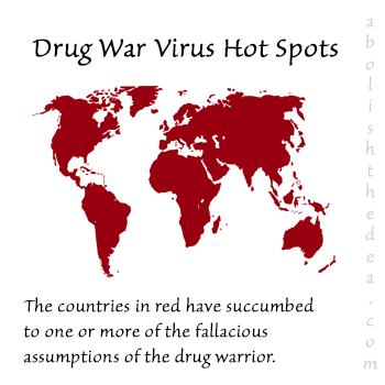 Fortunately for America, the few countries that would refuse to go along with such blackmail are despotic in nature and so are naturally inclined to make a huge law enforcement issue out of the boogeyman of "drugs" without any prompting from the American Empire. It gives those despots just the excuse they need to crack down on opponents without inciting the wrath of the United Nations: they're cracking down on "drugs" after all, not on dissent.