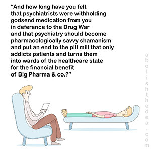 There are endless ways that psychoactive drugs could be creatively combined to combat addiction and a million other things. But the drug warrior says that we have to study each in isolation, and then only for treating one single board-certified condition.